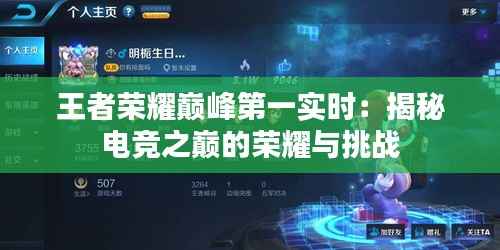 转载请注明来自成都华通顺物流有限公司,本文标题:《王者荣耀巅峰第一实时:揭秘电竞之巅的荣耀与挑战》