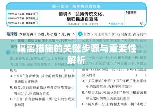 "落实隔离"是防控疫情的关键措施之一,我们需要明确隔离的重要性,掌握落实隔离的关键步骤,并采取措施更好地执行,只有这样,我们才能有效地控制疫情,保护公众的健康和安全,在这个过程中,政府、相关部门、社区以及公众都应积极参与,共同为落实隔离措施贡献力量,让我们携手共进,共同打赢这场疫情防控战役。