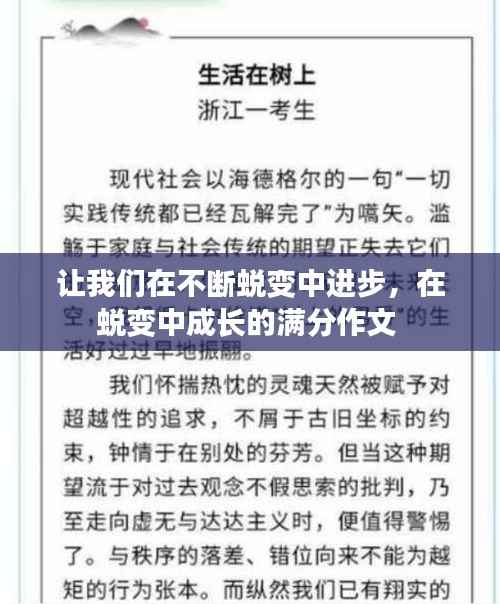 人生就像一场不断前行的旅程,每个人都在这个过程中不断经历着蜕变。蜕变,顾名思义,是指事物发生根本性的变化。这种变化不仅仅是外表的,更是内在的、精神的。在不断蜕变中,我们才能不断进步,成为更好的自己。