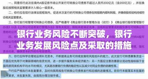 总之,银行业务风险的不断突破是金融行业发展的一大趋势。银行需要不断创新,提升风险管理能力,以应对不断变化的风险环境,确保业务的稳定和可持续发展。