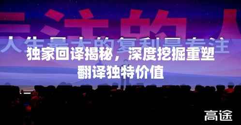 "独家回译"指的是一种特殊的翻译方式,它不仅仅是对原有文本的简单翻译,更是一次深度理解和再创作的过程,独家回译强调翻译者在理解原文的基础上,运用自身的知识和经验,对原文进行深度挖掘和再创造,以呈现出另一种语言中的全新表达。