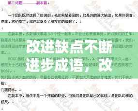 总之,面对缺点,我们不应逃避,而应积极改进。通过不断进步,我们可以成就更好的自己。正如成语所说:“日积月累,水滴石穿。”只要我们持之以恒地改进缺点,终将迎来成功的彼岸。让我们携手共进,不断追求卓越,成就非凡人生。