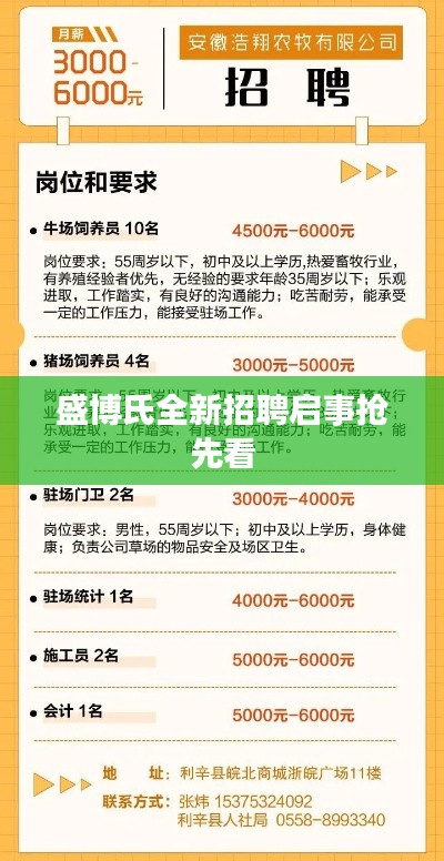 随着科技的飞速发展和市场的繁荣,盛博氏作为一家领先的科技企业,一直在行业内保持领先地位,为了满足公司不断扩张的需求,盛博氏近期发布了最新的招聘信息,为广大求职者提供了众多优质的职位和广阔的发展机会。