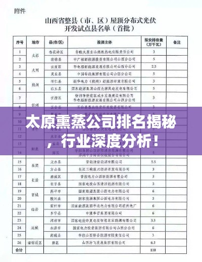 随着健康产业的快速发展,熏蒸作为一种传统的中医养生方式逐渐受到人们的青睐,太原作为山西省的省会城市,其熏蒸行业发展迅速,涌现出多家专业的熏蒸公司,本文将针对太原熏蒸公司进行排名和分析,帮助消费者更好地了解市场,为选择服务提供参考。
