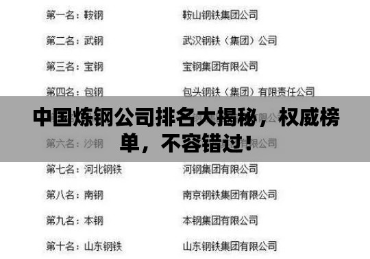 随着全球经济的蓬勃发展,中国的钢铁行业也取得了举世瞩目的成就,在众多炼钢公司中,它们凭借出色的技术、卓越的管理和强大的竞争力,在国内外市场上赢得了良好的声誉,下面我们就来了解一下中国炼钢公司的排名。