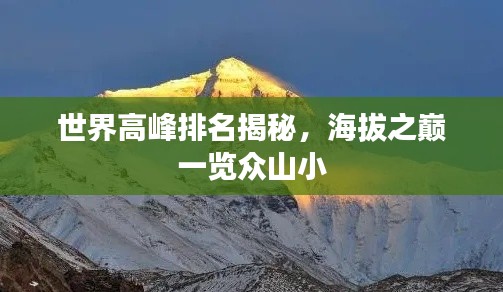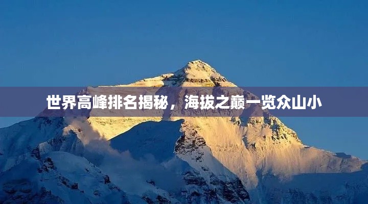 世界高峰的排名及其海拔高度是人类对自然界的探索与认知的一部分,这些高峰不仅是地理上的标志,更是人类勇气和毅力的象征,攀登高峰是一项极具挑战性的冒险活动,需要充分的准备和谨慎,希望本文能为您带来关于世界高峰的更多了解,同时也提醒您在攀登高峰时要关注安全,珍惜生命。