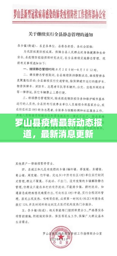 是罗山县最新疫情消息的报道,在疫情防控的关键时刻,我们需要保持冷静、理智应对,请大家继续关注官方发布的消息,共同为疫情防控贡献力量,相信在大家的共同努力下,罗山县一定能够战胜疫情,迎来更加美好的明天。