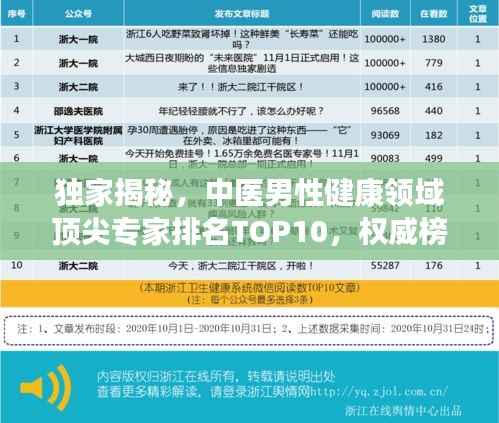 随着男性健康问题的日益关注,中医男性学领域也涌现出了一批杰出的专家,本文将为您介绍中医男性大师排名前十名,这些大师在男性健康领域拥有丰富的经验和深厚的学术背景,为男性健康事业做出了卓越的贡献。