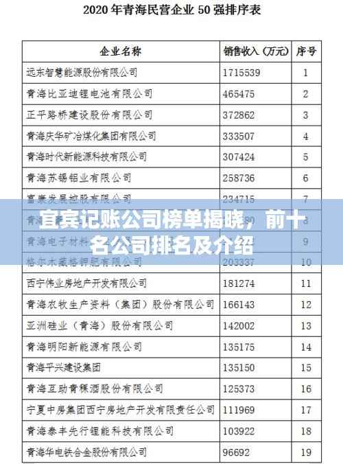 为宜宾市排名前十名的记账公司,这些公司在业内拥有较高的声誉和知名度,具备专业的团队和丰富的行业经验,能够为客户提供优质的服务,无论您是企业还是个人,选择一家专业的记账公司来帮您处理财务问题,将为您带来更多的便利和效益。
