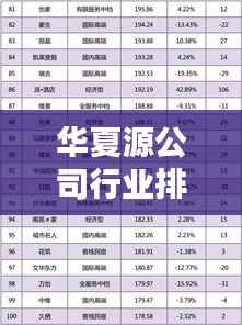 华夏源公司,作为一家具有深厚行业背景和卓越实力的企业,一直在其所在领域表现突出,随着市场竞争的日益激烈,华夏源公司的排名及其行业影响力成为了众多企业和投资者关注的焦点,本文将深入探讨华夏源公司的排名及其在行业中的地位和影响力。
