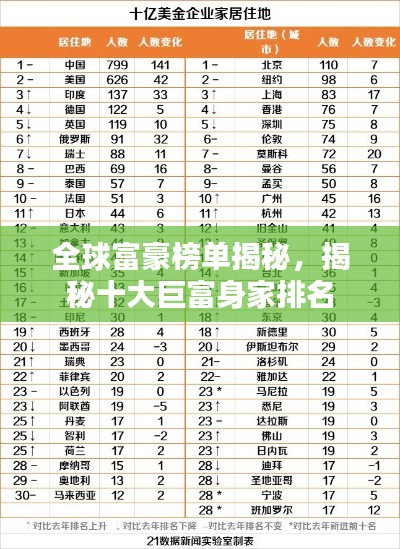 在全球经济不断发展和变化的时代,财富的增长速度令人惊叹,本文将介绍全球身家排名前十名的富豪,这些成功人士的财富成就令人瞩目,他们的故事和成功经验也为人们提供了宝贵的启示。