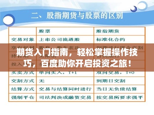 期货是一种金融衍生品,通过买卖合约来实现对某种商品未来价格的预测和交易,对于许多投资者来说,期货市场提供了一个高风险但潜在收益较高的投资渠道,随着互联网的普及,越来越多的人开始关注期货市场并想要了解如何操作,如何通过百度了解期货操作呢?接下来我们将详细介绍。