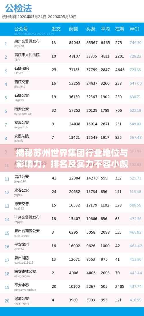 1、地域排名:在苏州市乃至江苏省内,苏州世界集团凭借其卓越的经营业绩和不断扩大的市场份额,一直位列前列,在苏州市的企业排名中,世界集团常常跻身前十名之内。