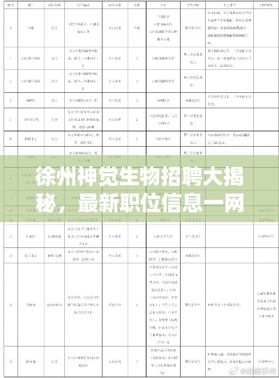 随着生物科技行业的飞速发展,徐州神觉生物作为业内翘楚,一直在寻求优秀人才的加入,本文将为您详细介绍徐州神觉生物的最新招聘信息,带您了解公司的招聘动态及人才需求。