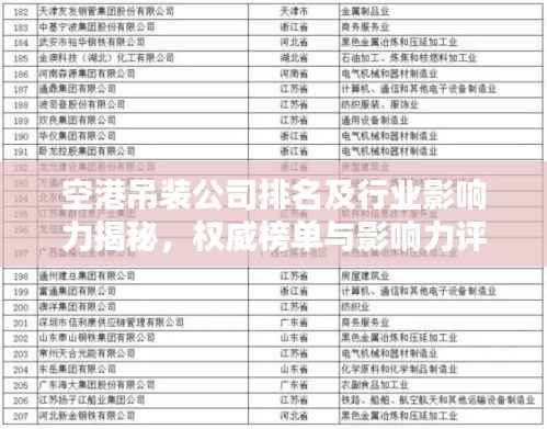 随着全球航空产业的快速发展,空港物流作为支撑航空运输的重要环节,日益受到关注,空港吊装公司作为空港物流中的关键一环,其服务质量与效率直接关系到航空运输的整体运营,本文将探讨空港吊装公司的排名及其行业影响力,以揭示这些企业在航空物流领域的重要地位。