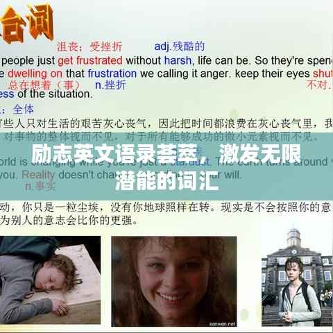 在人生的旅途中,我们时常需要一些励志的话语来鼓舞自己的士气,激发自己的潜能,这些励志语录,如同明灯,指引我们在困境中前行,让我们一起通过英文词汇来感受这些充满力量的励志语录。