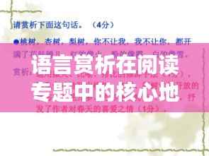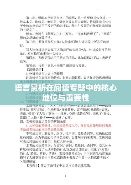 语言赏析在阅读专题中具有重要意义,我们应重视并不断提升自己的语言赏析能力。