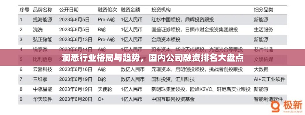国内公司融资排名反映了行业格局与趋势,为企业发展提供了重要的参考,企业在提高自身实力的同时,应关注市场动态,把握融资趋势,不断拓展融资渠道,实现快速发展,随着资本市场的不断完善和创新,国内公司融资市场将迎来更多的发展机遇,为企业发展注入强劲动力。
