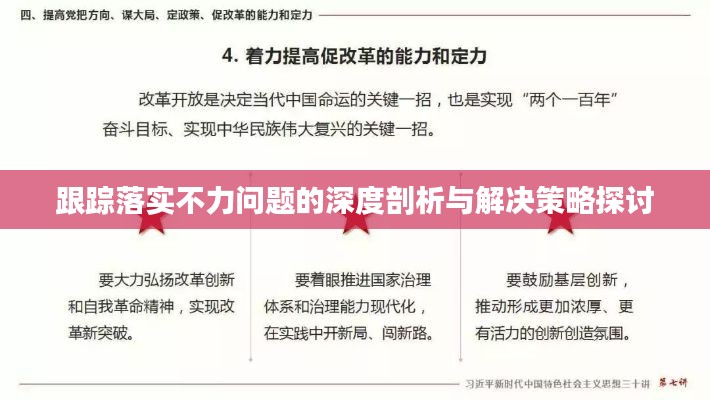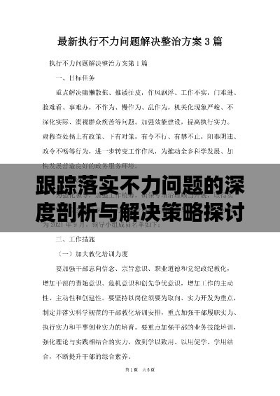 在当今社会,随着各项工作的深入推进,跟踪落实的重要性日益凸显,在实际工作中,我们不难发现跟踪落实不力的问题屡见不鲜,严重影响了工作效率与质量,本文旨在深入探讨跟踪落实不力问题的现状、原因,并提出相应的对策,以期为改进工作提供有益参考。