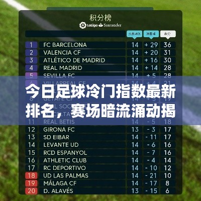 足球,这项全球最受欢迎的体育运动,总是充满了未知和惊喜,在每一次比赛中,除了豪门强队的表现引人注目之外,那些冷门赛事同样充满了变数,本文将为您带来今日足球冷门指数排名最新情况,揭示赛场上的暗流涌动。