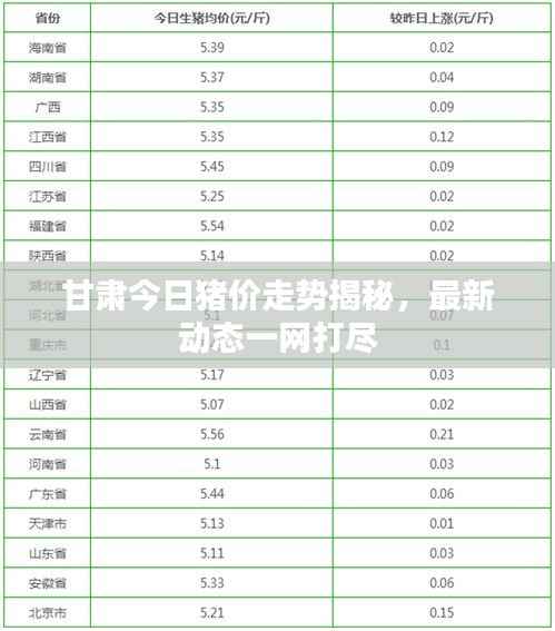 随着国内畜牧业的持续发展,猪肉价格一直是人们关注的焦点,甘肃作为畜牧业大省,其猪价格走势更是备受关注,本文将对甘肃今日猪价格走势进行最新分析。