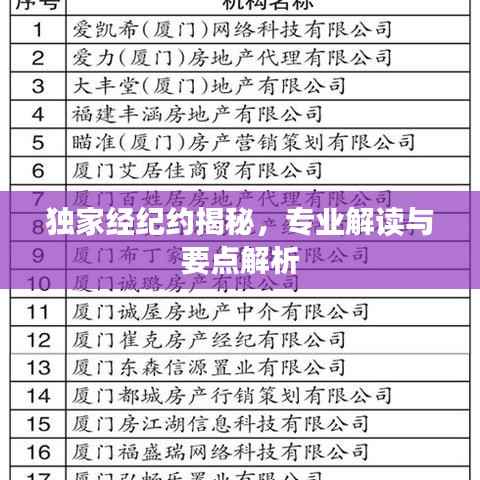 在当今社会,随着娱乐产业、体育竞技等领域的蓬勃发展,我们经常会听到一个词汇——“独家经纪约”,独家经纪约到底是什么?本文将为您详细解析这一概念。