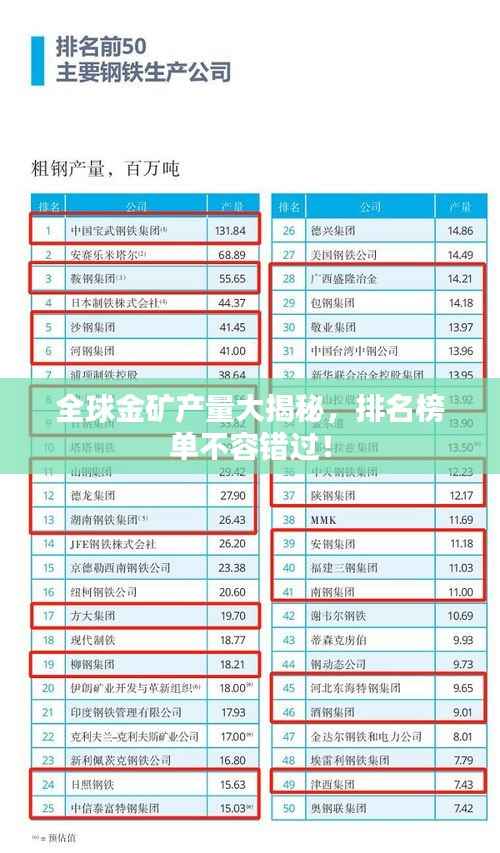 金矿资源是全球经济的重要支柱之一,全球各地的金矿产量直接影响着国际金价和各国的经济发展,本文将为您介绍全球金矿产量的排名情况。