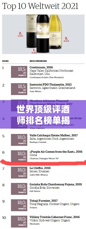 随着全球葡萄酒市场的繁荣和发展,评酒师这一职业逐渐受到广泛关注,他们凭借深厚的葡萄酒知识和独特的品鉴技巧,为人们带来关于葡萄酒的深入解析和评级,在世界顶级评酒师排名榜中,我们将探讨一些在行业内具有极高声誉和影响力的评酒师。