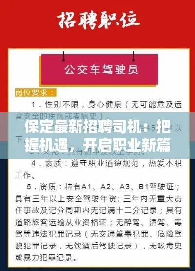 标题:保定最新招聘司机:把握机遇,开启职业新篇章