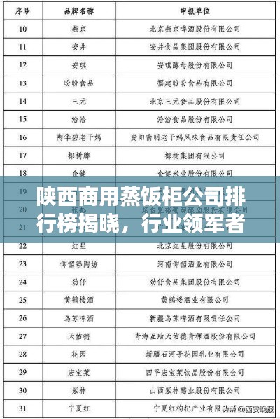 随着经济的发展,商用厨房设备行业逐渐壮大,其中陕西地区的商用蒸饭柜公司也日渐崭露头角,本文将为您详细介绍陕西商用蒸饭柜公司的排名,以帮助您更好地了解这一领域的企业。
