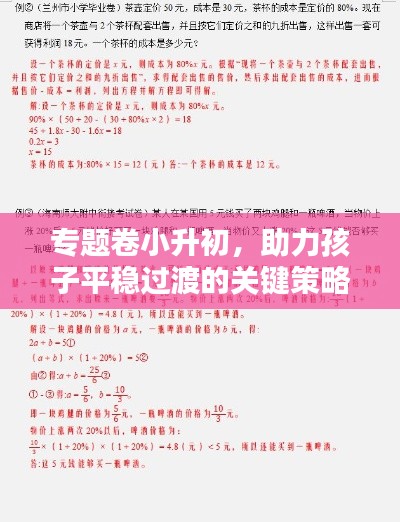 随着教育的不断进步与发展,小升初阶段成为孩子们学习生涯中一个重要的转折点,为了帮助孩子们顺利过渡,家长们需要关注专题卷小升初的相关内容,为孩子们提供有效的学习支持,本文将详细介绍专题卷小升初的重要性,并结合实践经验,为家长和孩子们提供有效的建议。
