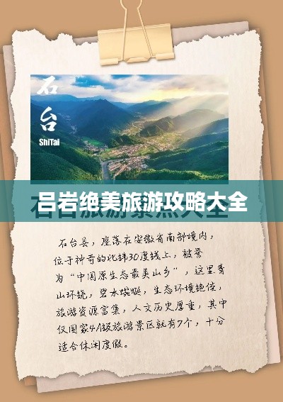吕岩,这片充满神秘色彩的土地,以其独特的风貌和丰富的旅游资源吸引着无数游客,这里拥有壮丽的山水、悠久的历史文化和独特的地域风情,为旅行者提供了一次难忘的旅程,本篇旅游攻略将带您领略吕岩的魅力,助您更好地规划行程。