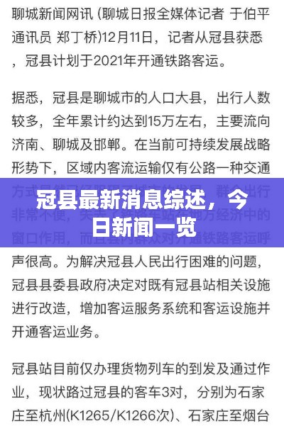 随着信息时代的发展,新闻资讯的更新速度日益加快,冠县作为山东省的一个重要城市,其每日的新闻动态备受关注,本文将为您梳理冠县今日新闻最新消息,带您了解这座城市的最新发展动态。