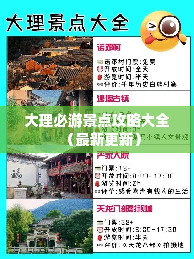 大理,这座美丽的城市,以其独特的自然风光和丰富的文化底蕴吸引着无数游客,本文将为您详细介绍大理的必游景点,让您在游玩过程中更加得心应手。
