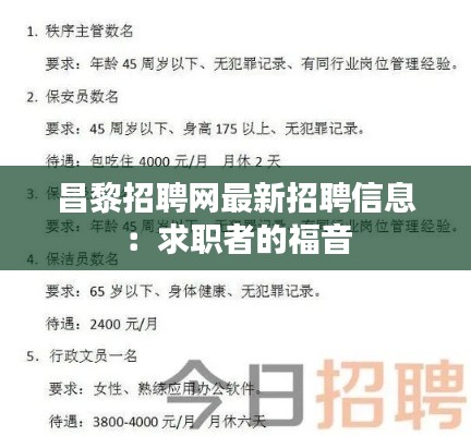 标题:昌黎招聘网最新招聘信息:求职者的福音
