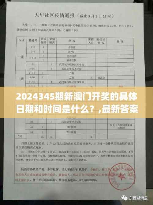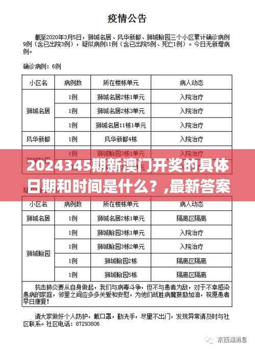 2024345期新澳门开奖活动备受社会各界期待,其开奖日期和时间也成为彩民心心念念的问题。通过查阅最新的官方文件,我们可以发现澳门彩票管理局已经将具体日期公之于众。
