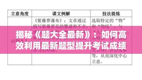 标题:揭秘《题大全最新》:如何高效利用最新题型提升考试成绩