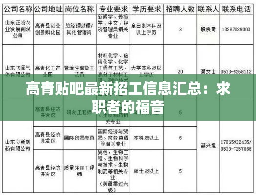 高青贴吧最新招工信息汇总:求职者的福音