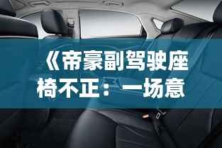在汽车行业中,每一个细节都可能成为消费者关注的焦点。帝豪汽车作为国内知名品牌,其产品质量和设计一直备受瞩目。然而,最近有车主发现,帝豪副驾驶座椅似乎存在“不正”的问题。这一发现引发了广泛的讨论和关注,甚至有人将其视为一场意外的舒适革命。