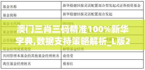 澳门特别行政区一直以来都在不断努力提升政策的精准性和执行力。在众多政策文件中,“澳门三肖三码精准100%新华字典,数据支持策略解析_L版2.456”以其独特的视角和全面的数据支持,为政策制定者提供了宝贵的参考。该文件的名称源自其基于新华字典中的标准术语,结合数据支持策略进行解析,确保政策内容的明确性和准确性。