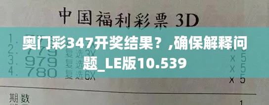澳门特别行政区作为中国的特别行政区之一,享有高度自治权,在社会、经济和文化等方面具有独特的地位和作用。澳门特别行政区政府一直致力于维护澳门的繁荣稳定,提供各种政策支持和资源保障,以促进澳门的持续发展。在这一过程中,澳门政策文件发挥了重要作用,为澳门的政策制定和实施提供了指导和依据。本文以"奥门彩347开奖结果?,确保解释问题_LE版10.539"为题,对澳门彩347开奖结果进行了详细解读,并提出了相关政策建议,以期为澳门的发展提供有益参考。