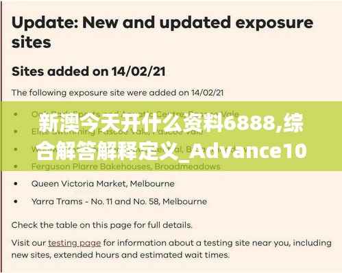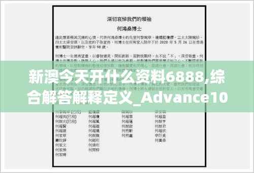 在撰写涉及澳门政策文件的文章时,了解特定文件的新情况对于读者来说是至关重要的。今天,我们将特别关注编号为“6888”的资料文件,并对其进行综合解答和解释定义。这份文件—“新澳今天开什么资料6888,综合解答解释定义_Advance10.889”包含了最新的政策变动和相关解释,以期为广大市民和利益相关者提供准确、权威的信息。