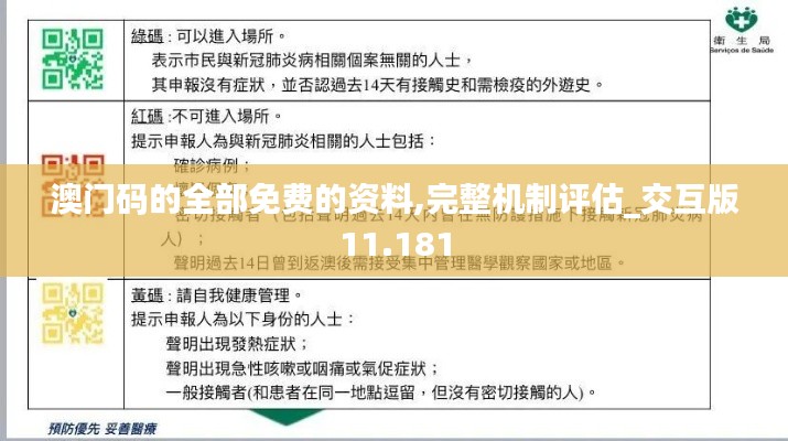 澳门码的全部免费的资料,完整机制评估《交互版11.181》的出台,不仅为广大的澳门市民带来了实实在在的便利,也是对特区政府服务模式的一次完善和优化。本文旨在详细介绍澳门码的全部免费的资料和完整机制评估《交互版11.181》的背景、含义与深远影响,以期为读者提供全方位的解读。