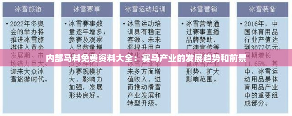综上所述,“内部马料免费资料大全:赛马产业的发展趋势和前景”深入分析了赛马产业的全球发展趋势和澳门的独特优势,展望了澳门赛马产业的美好未来,并指明了澳门政策文件中对赛马产业的支持措施。澳门赛马产业在政府的政策引导和市场推动下,必将迎来更加光明的发展前景。