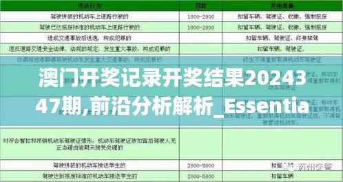 澳门,这个充满活力的城市,不仅以其独特的文化和历史吸引着全球的目光,其博彩业也在国际舞台上占据着举足轻重的地位。随着澳门博彩业的不断成熟和发展,澳门政府也越来越注重提升博彩产品的标准化与透明度,从而增强公众对于博彩活动的信任。本文将对2024年第347期Essential8.547开奖记录及结果进行详细解析,旨在提供前沿分析和深度解读,使公众更好地了解澳门博彩市场的运作机制和开奖结果的重要性。