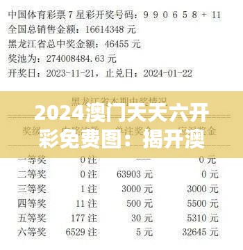 一直以来,澳门以其独特的地理位置和历史背景,孕育了多样的文化与娱乐形式。澳门彩票作为一种深受居民和游客喜爱的游戏,随着2024年“澳门天天六开彩”新项目的推出,正揭开全新的面纱。具体来说,“2024澳门天天六开彩免费图”将为彩票爱好者提供一个全新的、互动的和免费的视觉体验,展现了澳门政策的创新与决心,旨在以全新的方式鼓励健康发展彩票经济和提升娱乐多样性。