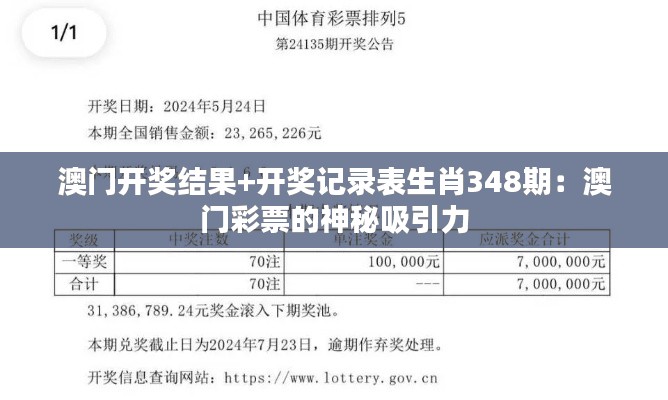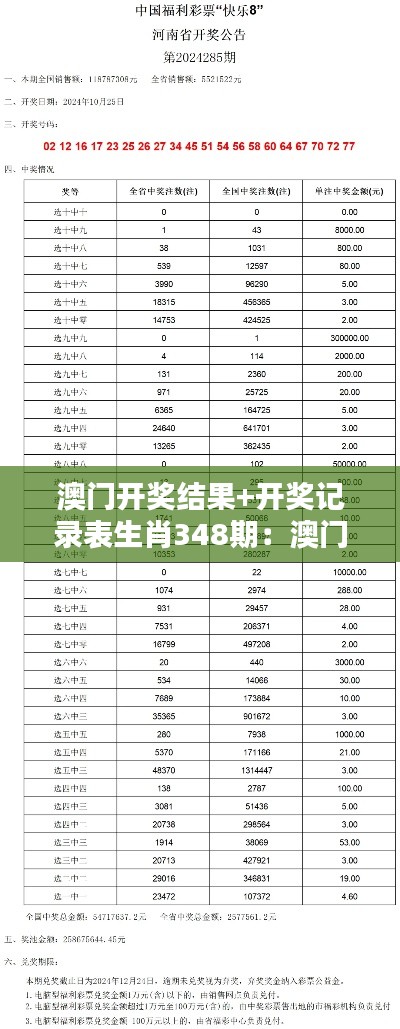澳门彩票市场以其高度的公开透明和多样性为玩家提供了大量的选择。澳门彩票业严格遵守国家和澳门特区政府的相关法规,持续维护游戏的公平公正。从足球彩票、六合彩到生肖彩票等多种类型,澳门彩票游戏种类丰富,满足不同消费者的喜好。本次特刊关注的重点则是澳门生肖彩票,特别是348期的开奖结果及开奖记录表。
