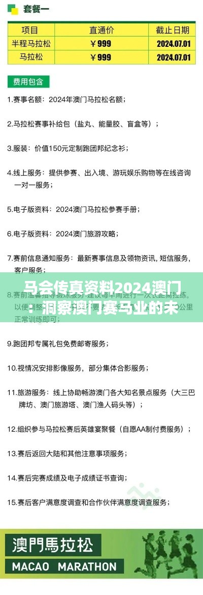当赛马的马蹄在赛道上络绎不绝地响起,澳门这座城市也随之而跳动。澳门赛马业不仅仅是一项传统运动,更是澳门多元文化的一个重要组成部分。现在,让我们通过这份“马会传真资料2024澳门”,洞察澳门赛马业的未来脉搏。