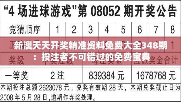 转载请注明来自成都华通顺物流有限公司,本文标题:《新澳天天开奖精准资料免费大全348期:投注者不可错过的免费宝典》