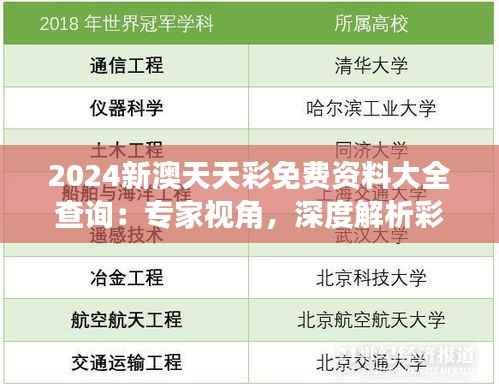 2024新澳天天彩免费资料大全查询的价值在于其免费提供高质量、高时效的彩市资讯。它不仅为彩民提供了便利的查询渠道,还通过专家的深入分析,帮助彩民更好地理解彩市,避免投资误区,提升投资的成功率。